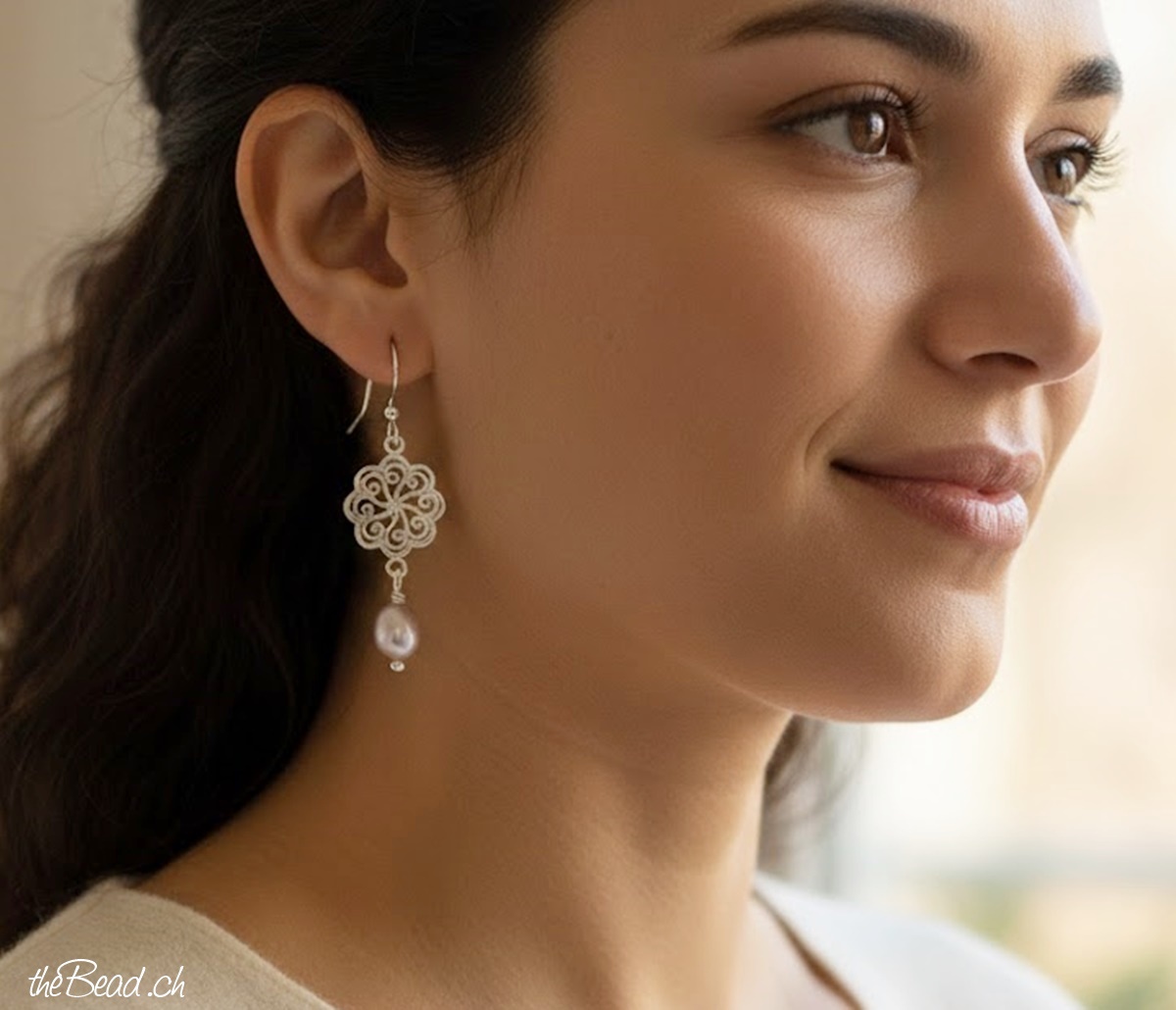 Wunderschöne Ohrhänger aus Silber & Süsswasserperlen