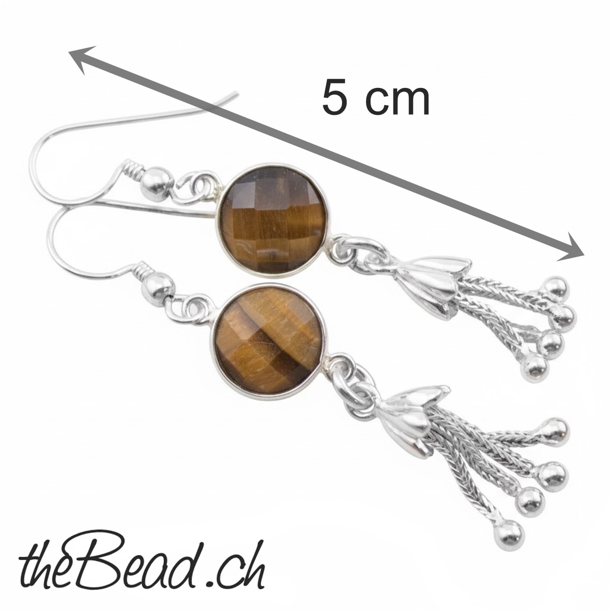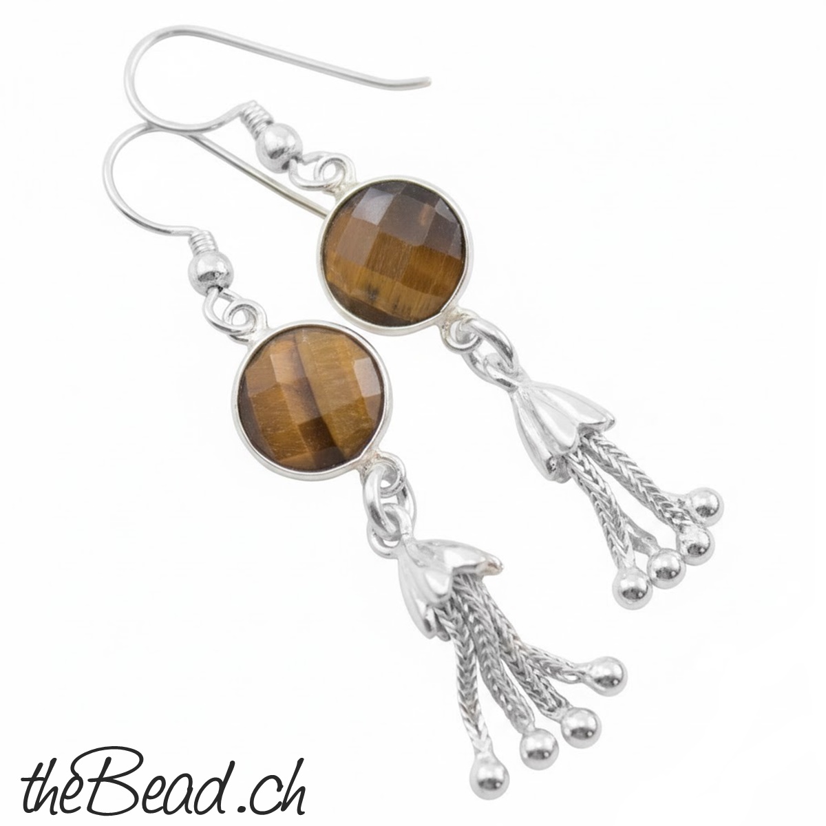 theBead Silberohrhänger mit einem hübschen Quasten Anhänger, in der Mitte ist ein Tigeraugen Stein eingefasst