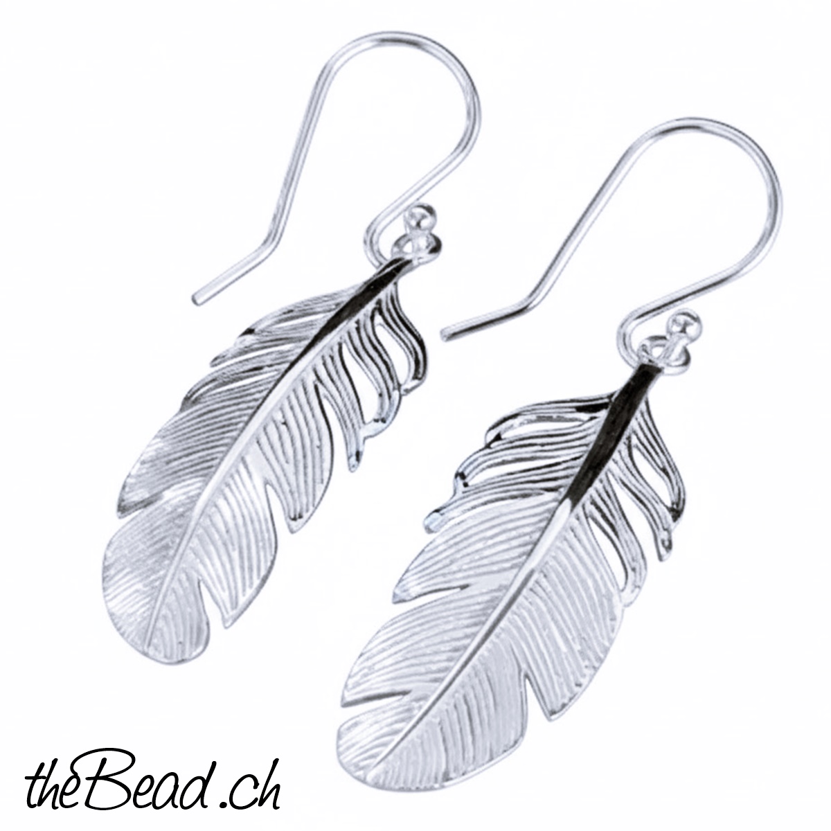 Grosse Feder Ohrhänger aus 925 Sterling Silber