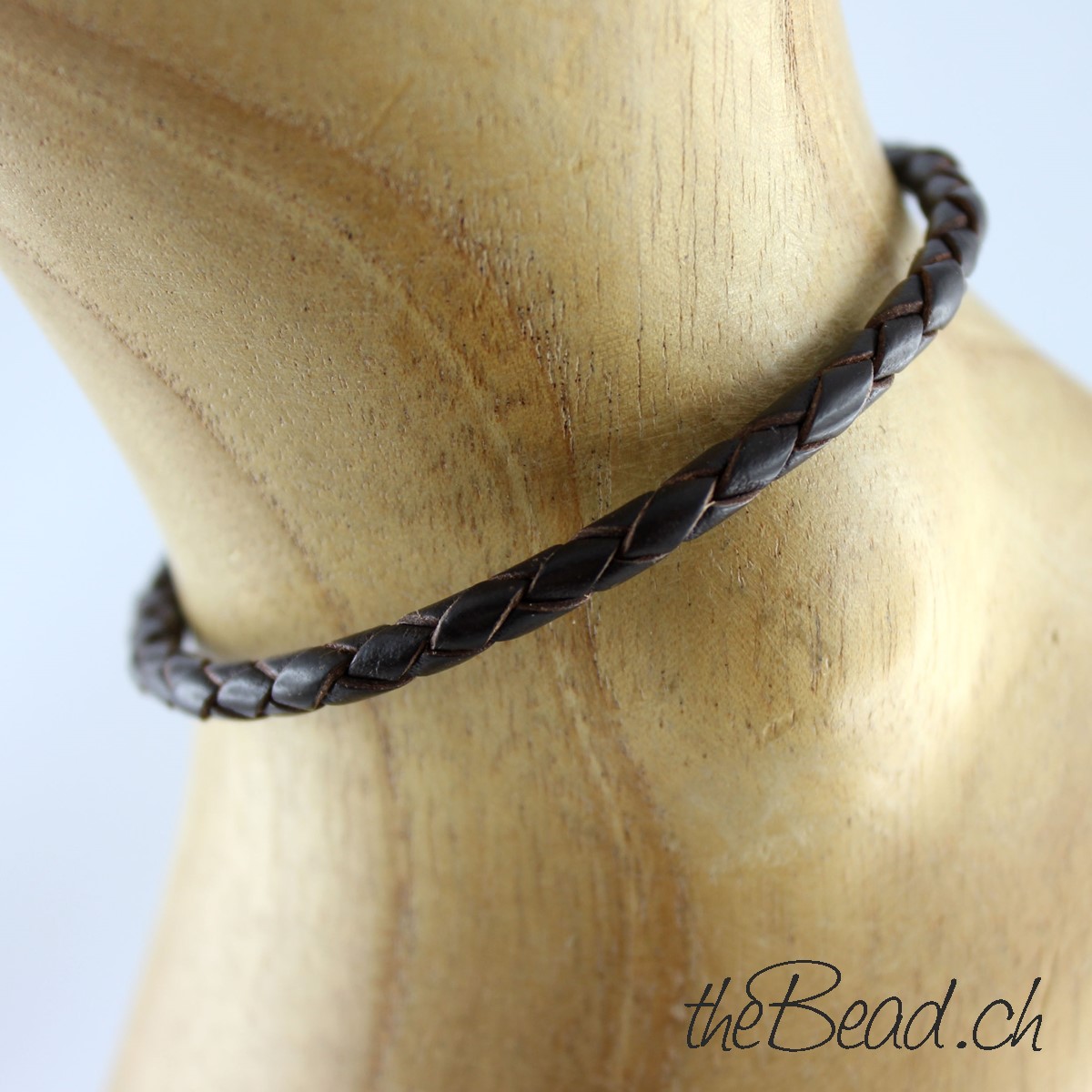 Lässiges Fussband aus Echtleder und hochglanz poliertem Edelstahl,