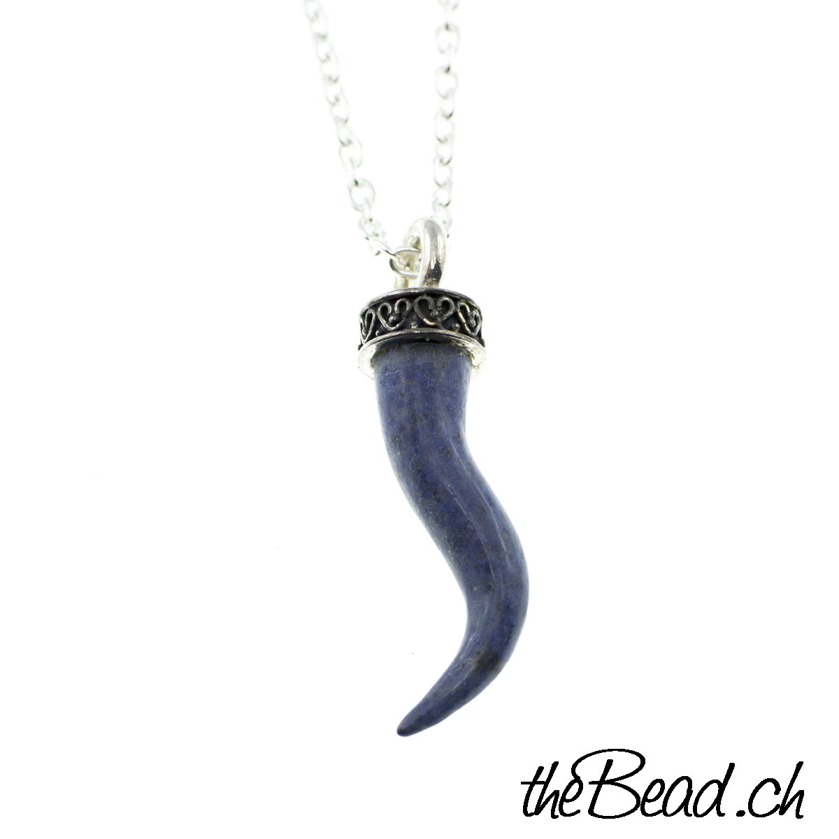 Dieser Silberschmuck besteht aus einer Silber Halskette und einem Dumortierit Stein der ebenfalls in Silber 925 Sterling eingefasst ist.