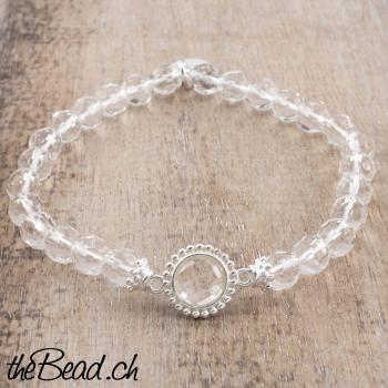 Labradorit & Silberperlenarmband mit Bergkristall Anhänger, mit Gravur!