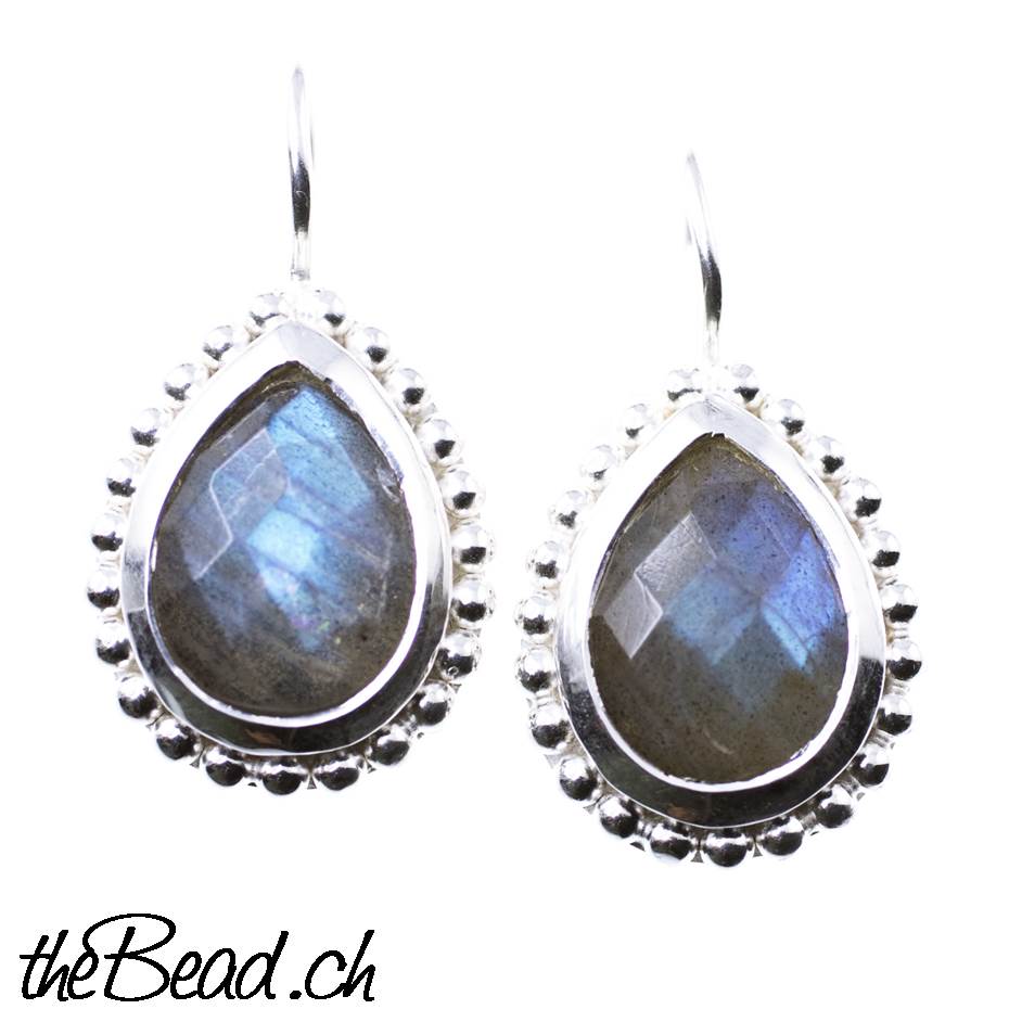 EDELSTEIN Ohrringe mit LABRADORIT & 925 Silber