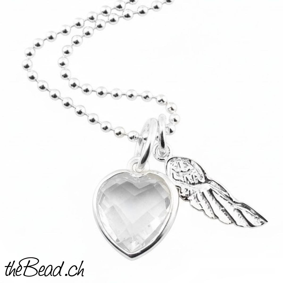 " Bergkristall Herz " mit Feder Anhänger mit Silberkette