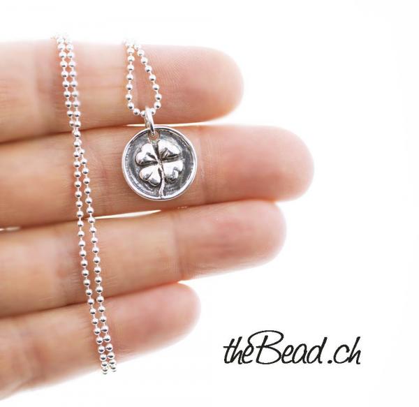 Silberhalskette " Glücksbringer " mit Kleeblatt
