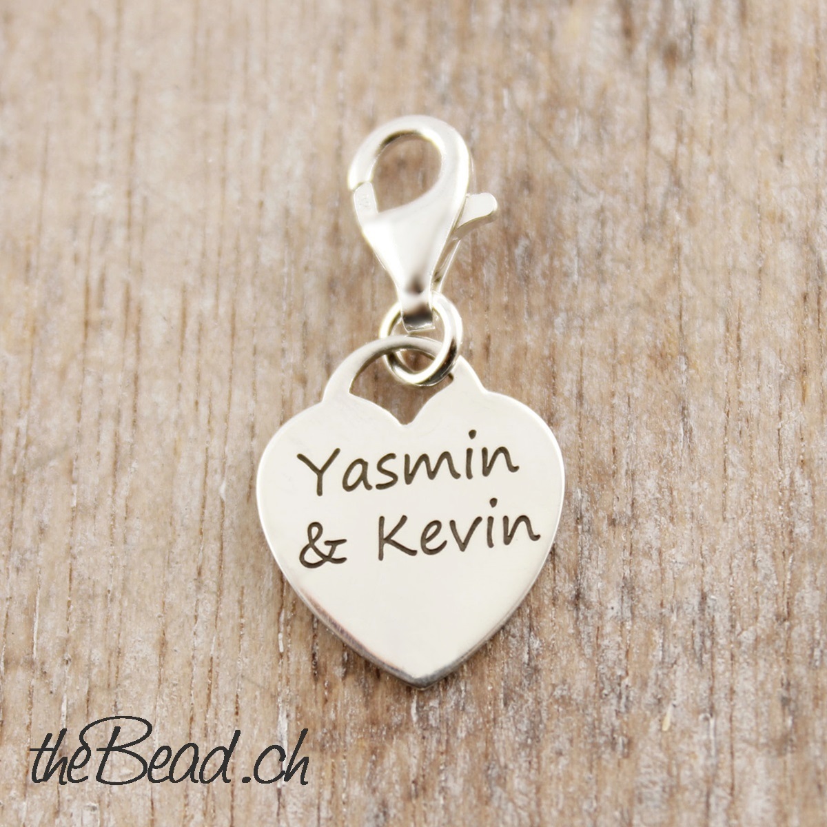 Das Herzchen ist mit einem kleinen Karabiner eingehängt, es lässt sich somit auch perfekt abnehmen und z.Bsp. an einer Halskette tragen Die Gravur des Herzchens ist im Gesamtpreis bereits enthalten, auf dem Herzchen hat es Platz für zwei Zeilen je maximal 8 Zeichen