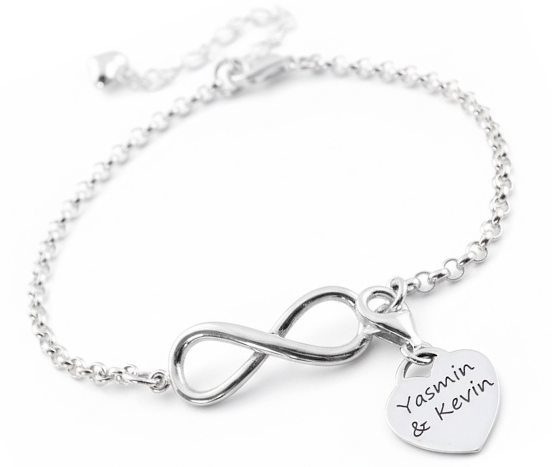 Silberarmband " Infinity " mit Gravur Herz Anhänger