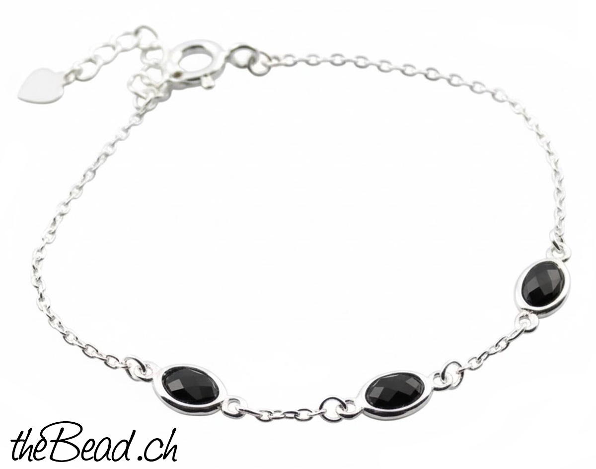 hübsches, feines Silberarmband mit eingefassten Onyx Steinen