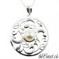 Hübsch verzierter, grosser runder Anhänger mit einer Perle in der Mitte.