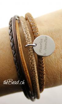 Lederarmband mit verschiedenen Lederarten und Wunsch - Gravur