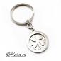 Der Schlüsselanhänger besteht aus einem Schlüsselring an dem zwei Anhänger baumeln.