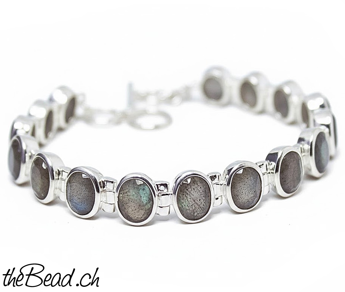 Wunderbar anschmiegsames Edelsteinarmband mit vielen ovalen Labradorit Edelsteinen.