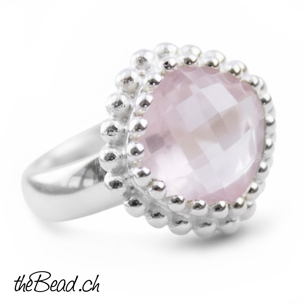 Schöner Silber Fingerring mit geschliffenem Rosenquarz in 925 Sterling Silber