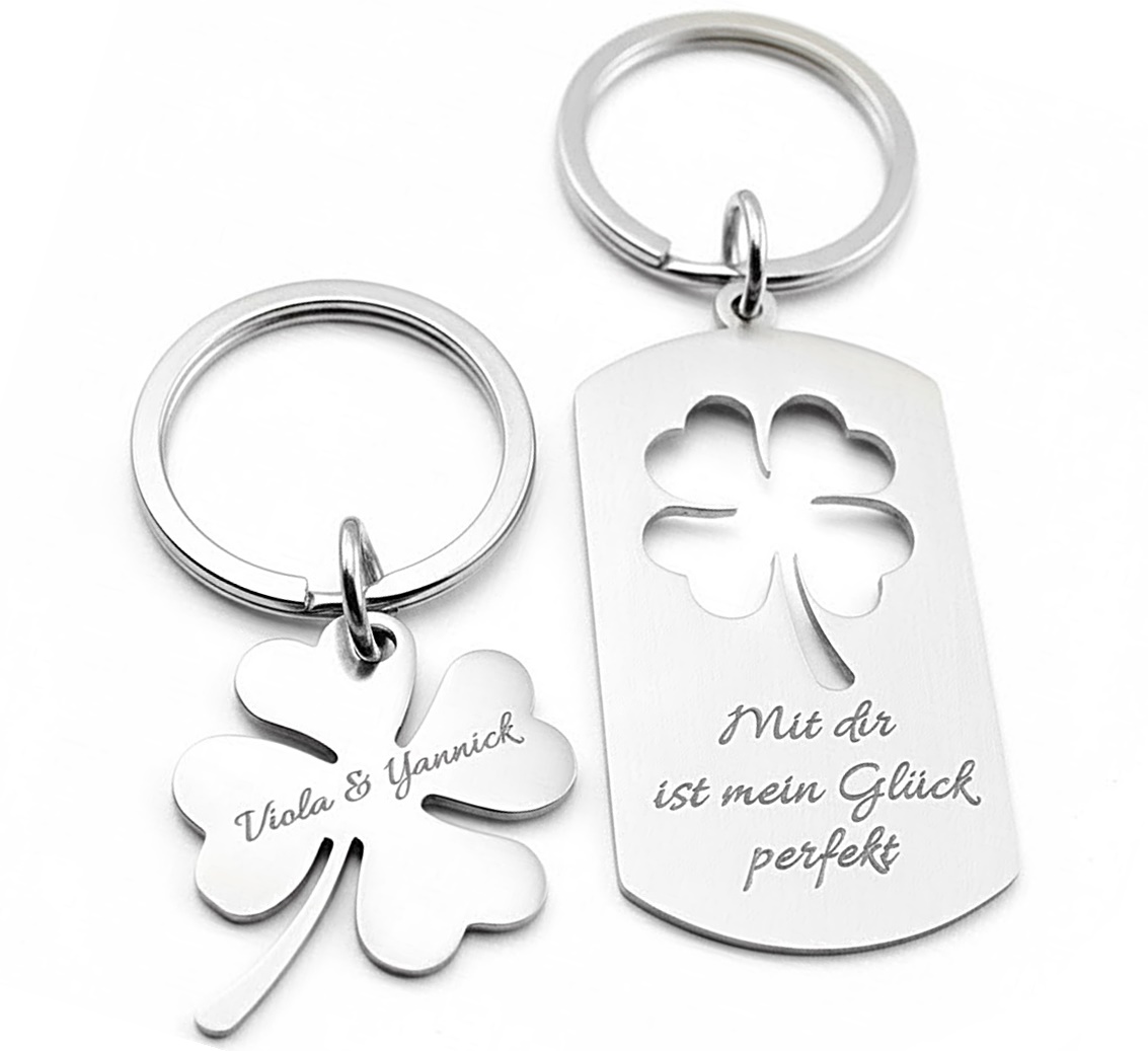 2x Glücksbringer Schlüsselanhänger mit Ihrer Wunsch - Gravur