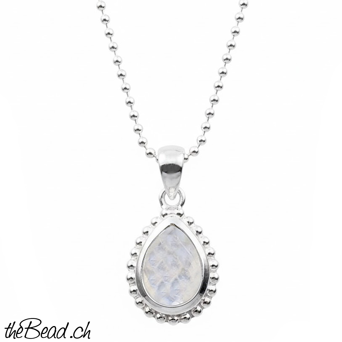 Hübsch mit Silber - Pünktchen eingefasst Gearbeitet aus Silber und facettiertem / geschliffenem Regenbogen Mondstein