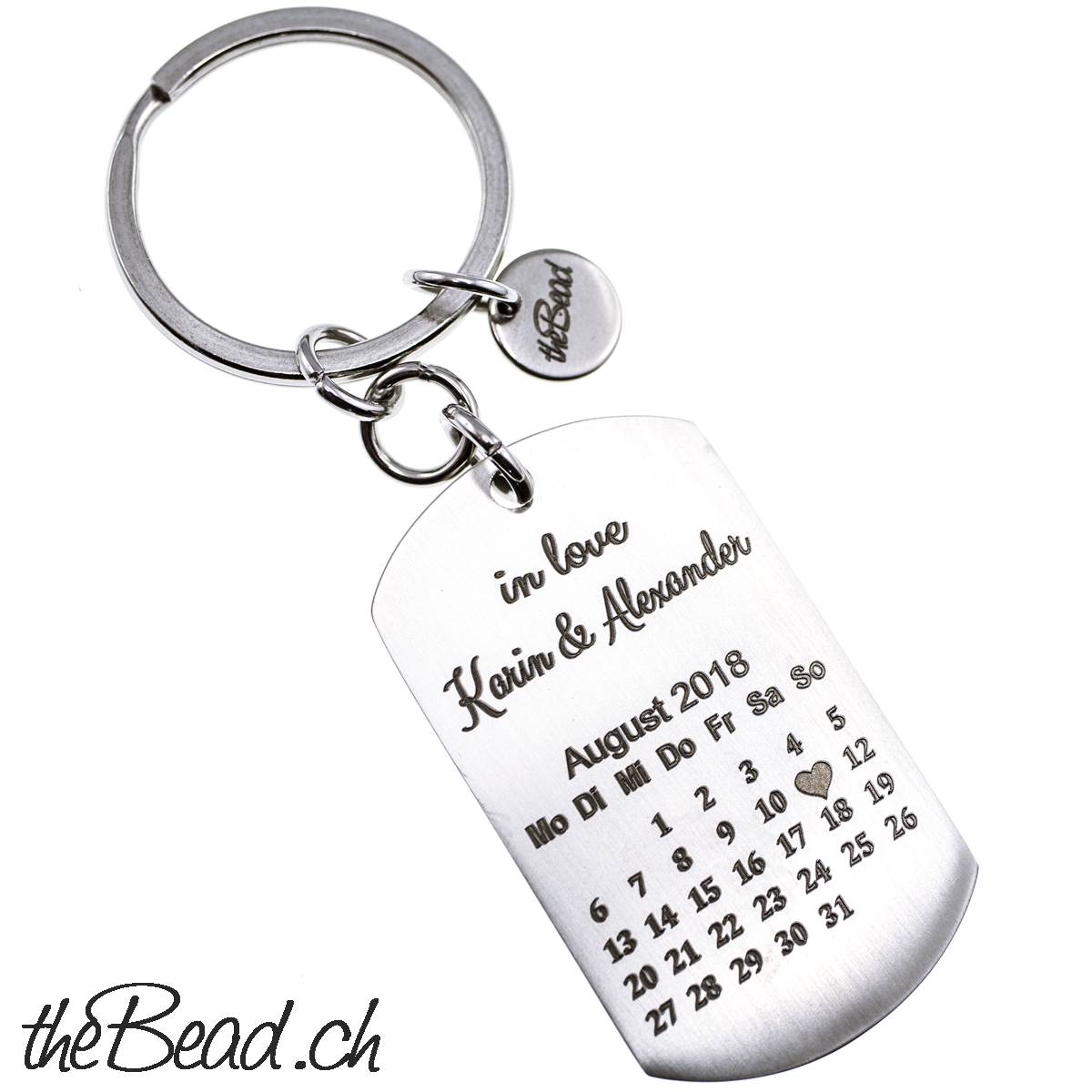 Auf dem Kalender wird Ihr Wunsch - Datum ( z.Bsp. Geburtstag, Hochzeitstag, Jahrestag usw. ) mit einem Herzchen markiert, zusätzlich hat es noch Platz für zwei Gravur - Zeilen je 20 Zeichen.