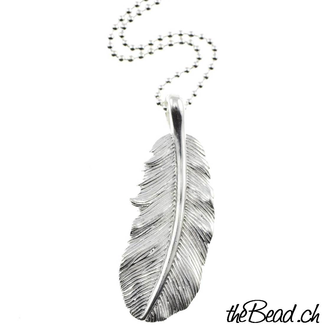 Schönes Silbercollier aus Echtsilber, bestehend aus einem grossen FEDER Anhänger mit Halskette. Die Feder ist ca. 4 cm lang Material: 925 Sterling Silber ( Feder ca. 4.0 x 1.5 cm )