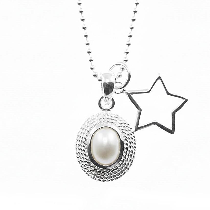 Silberkette mit hübschem Perlen- & Stern Anhänger