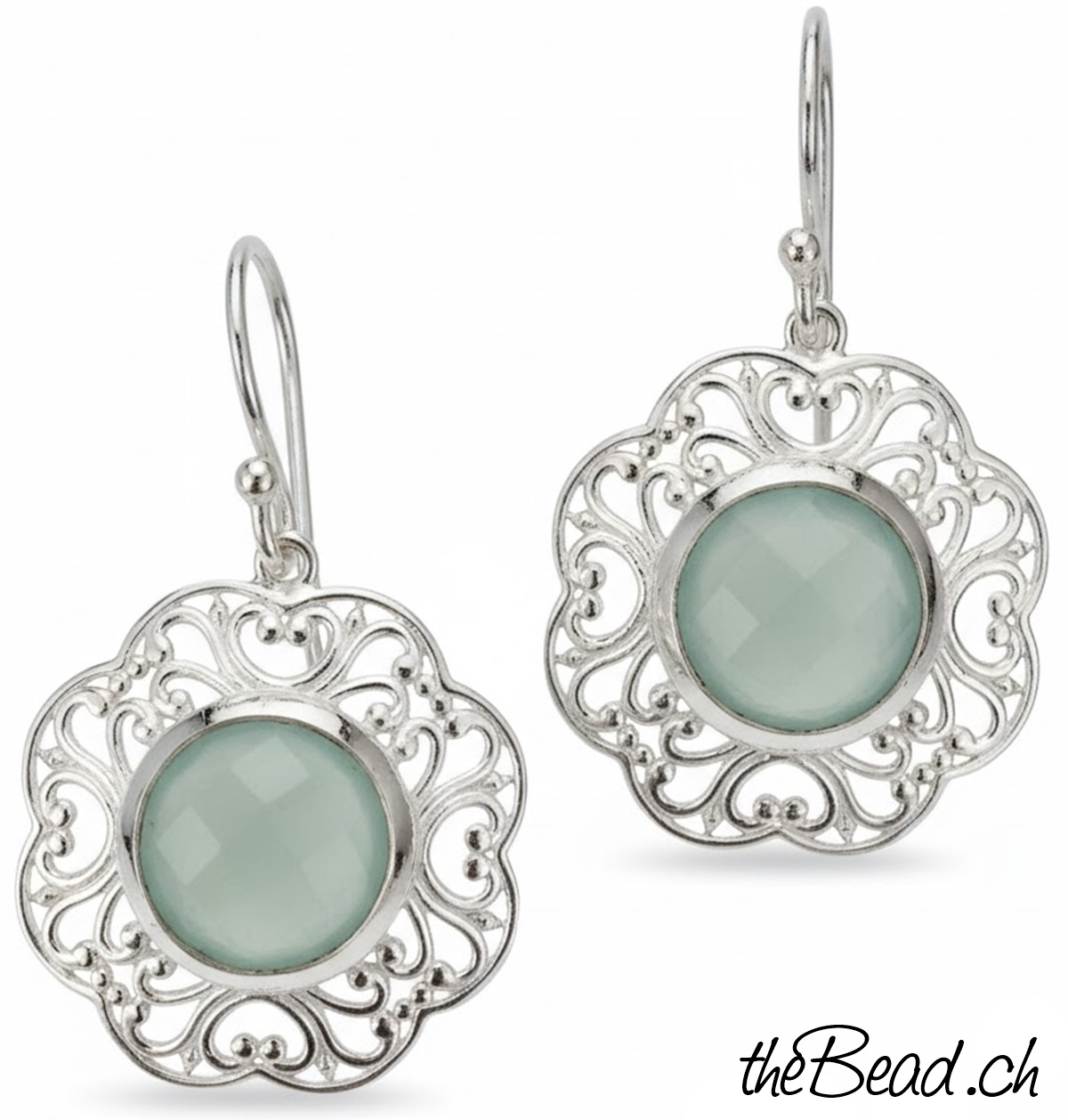 Dieser schöne Ohrschmuck besteht aus Aqua Achat und Silber.