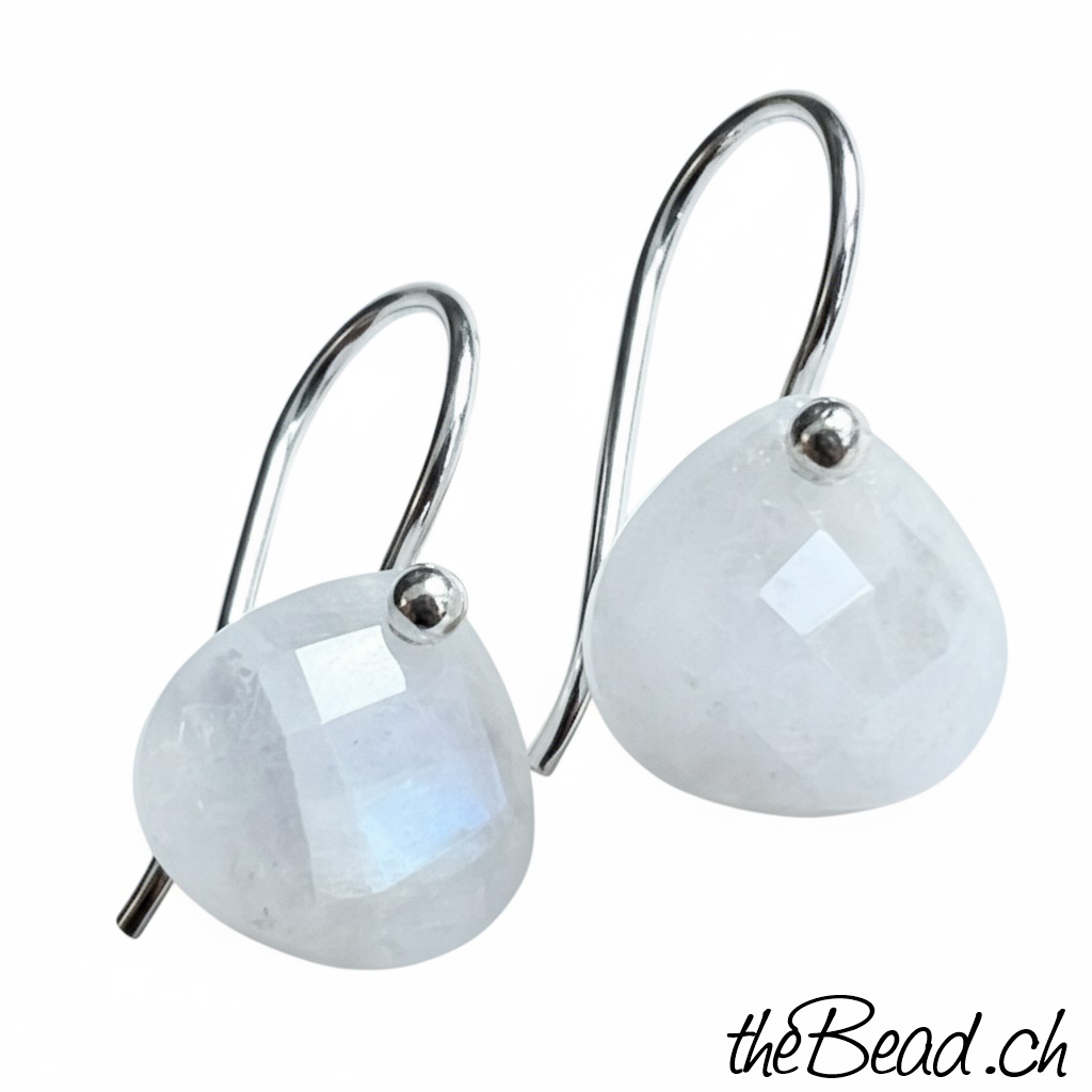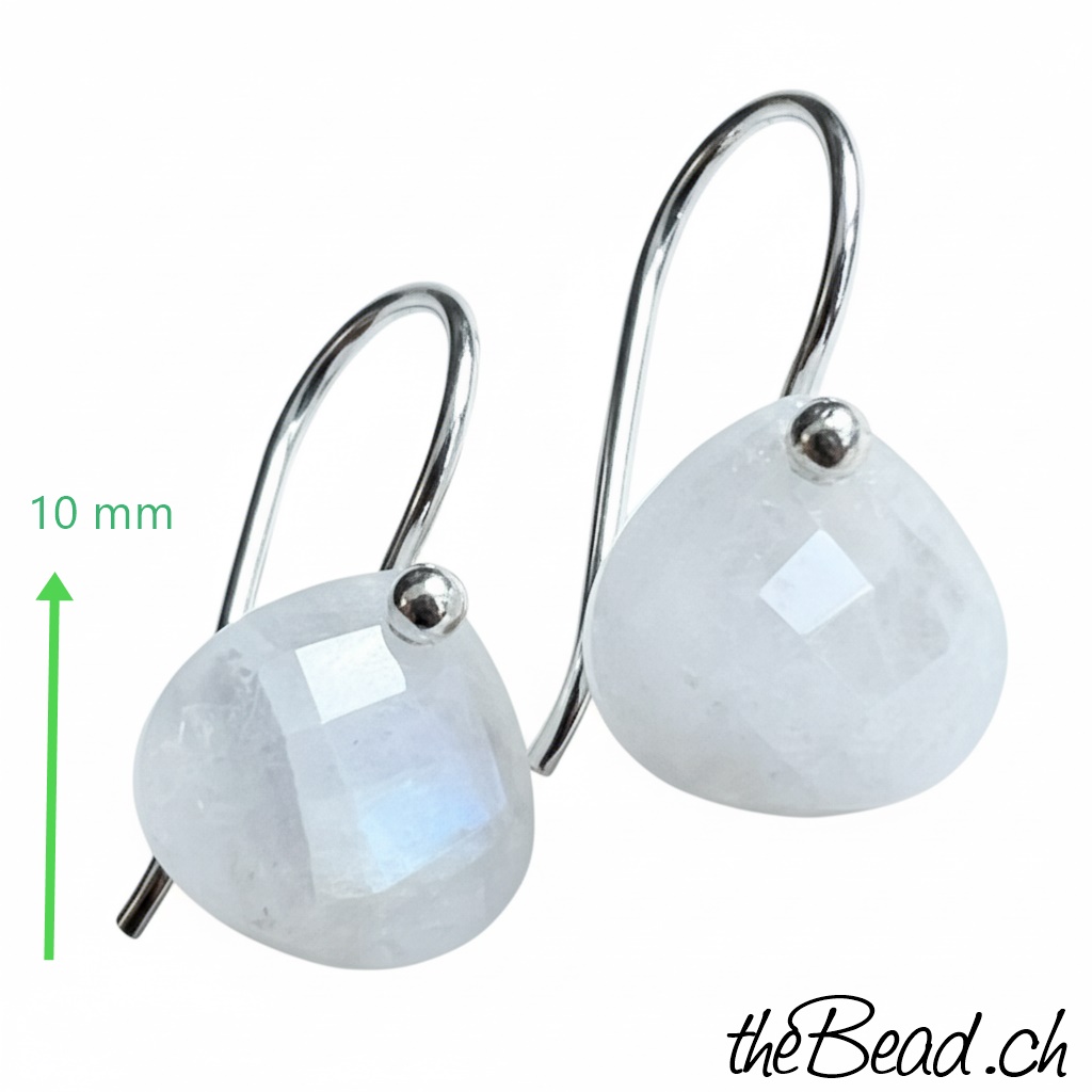 Kleine schlichte Ohrhänger mit Regenbogenmondsteinen