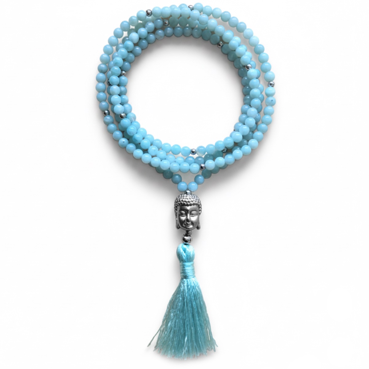 Lässige Halskette aus matten Amazonitperlen mit " Buddha " & Quasten Anhänger