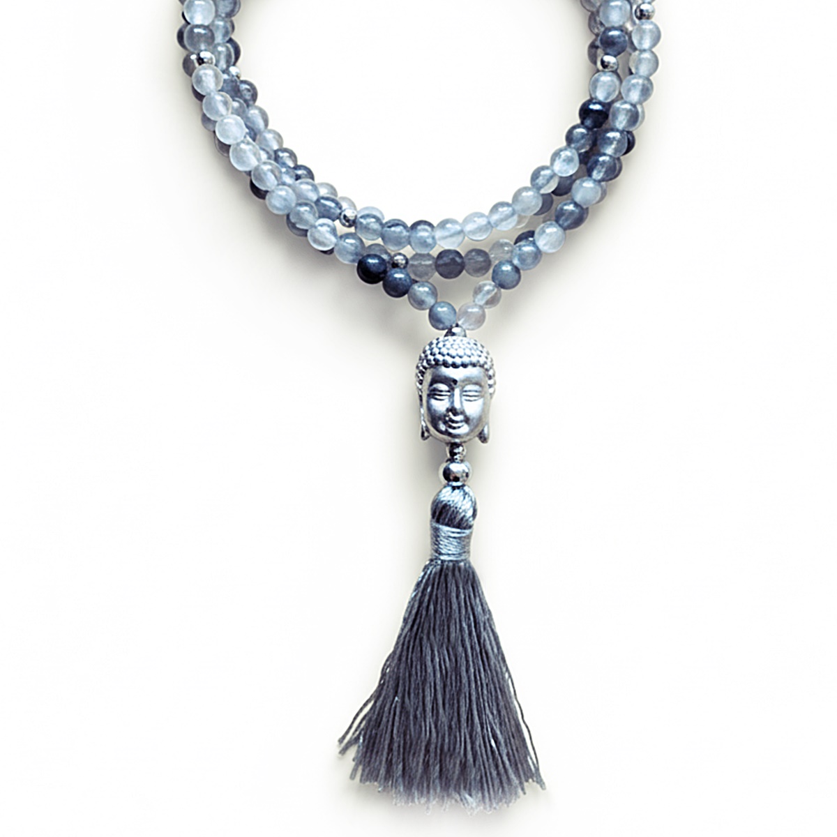 Dieses Silberquarzkette besteht aus echten Silberquarz Steinen die mit Silberperlen aufgefädelt sind, dazu ein BUDDHA ( auch Echtsilber ) mit passendem Quasten Anhänger