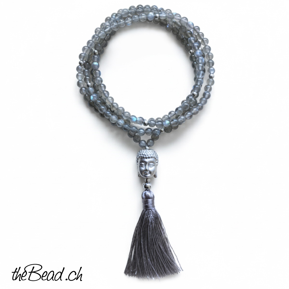 Labradorit Kette " Buddha " mit Quasten Anhänger