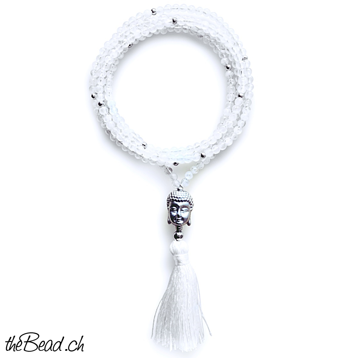 Mondstein Halskette " Buddha " mit Quasten Anhänger