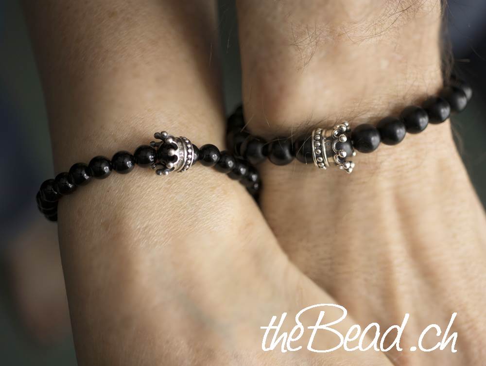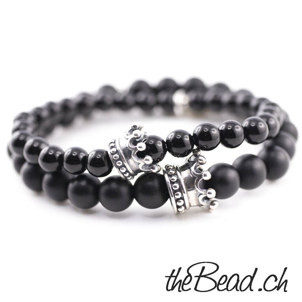 Im Preis sind beide Partnerarmbänder enthalten Beide Armbänder bestehen echten Achatperlen, Armband Nr. 1 ist aus glänzenden Perlen (6 mm) und Armband Nr. 2 aus matten Perlen (8 mm) gearbeitet. Dazu ist jedes Armband mit einem Krönchen aus Silber verziert.