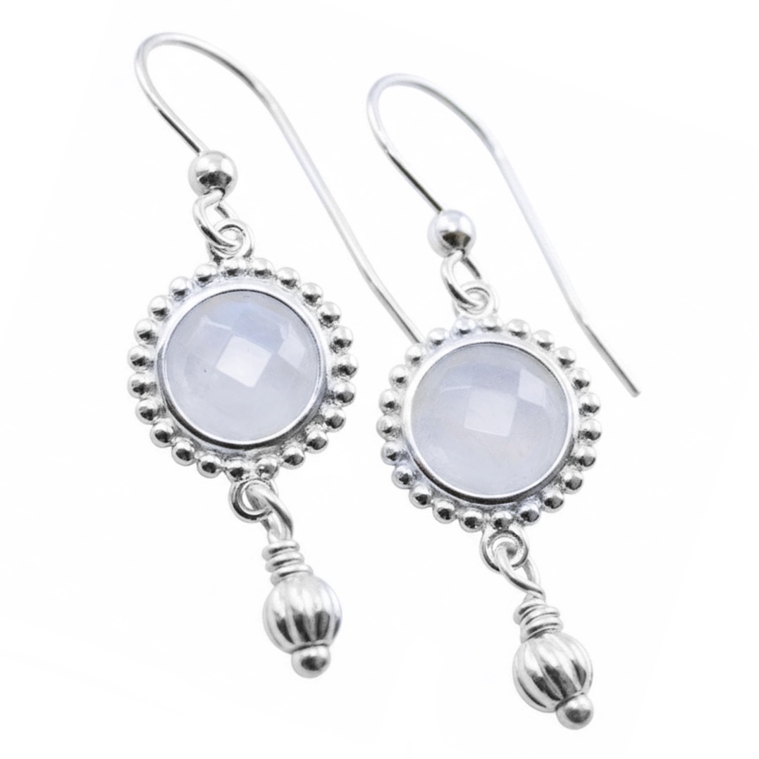 Diese Ohrhänger sind aus echtem Regenbogen Mondstein gefertigt, die Mondsteine sind in Silber