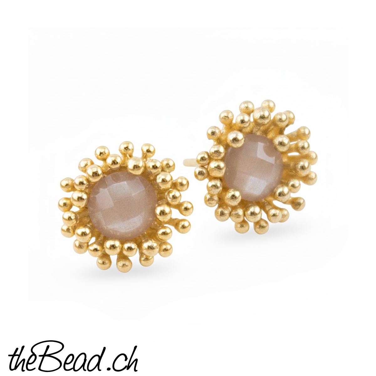 bezaubernde CHOCOLATE MONDSTEIN vergoldete Ohrstecker