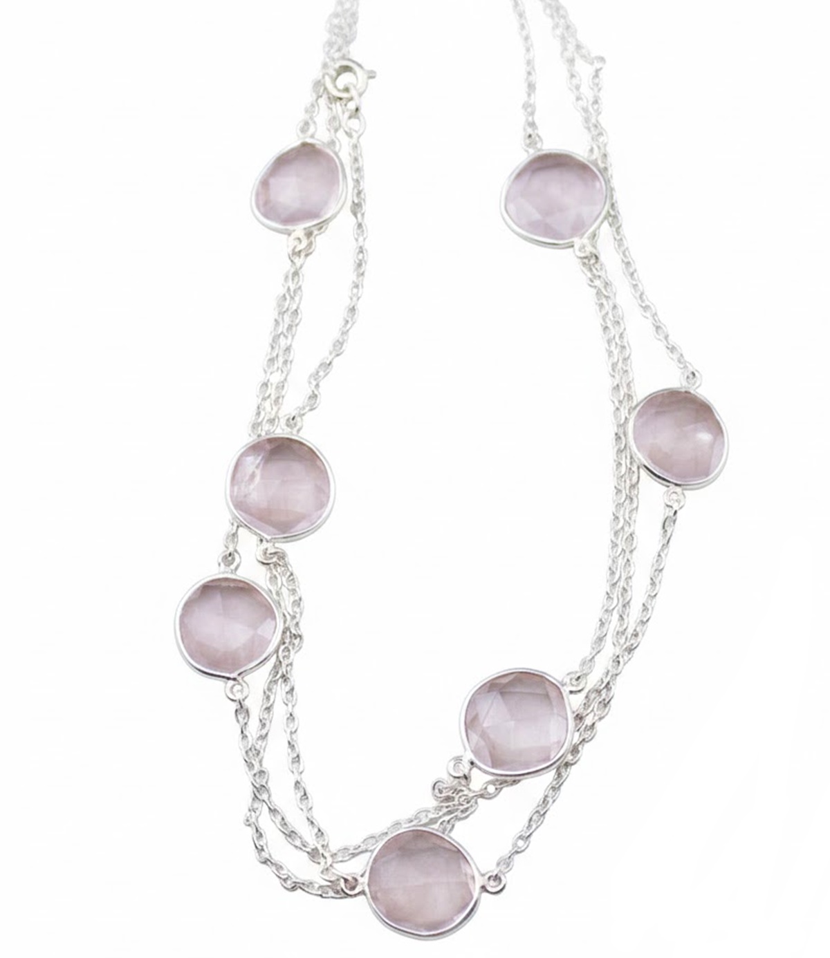 Tolle, moderne Silberkette mit vielen ROSENQUARZ Steinen.