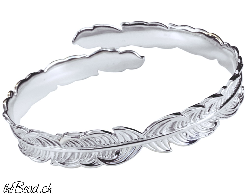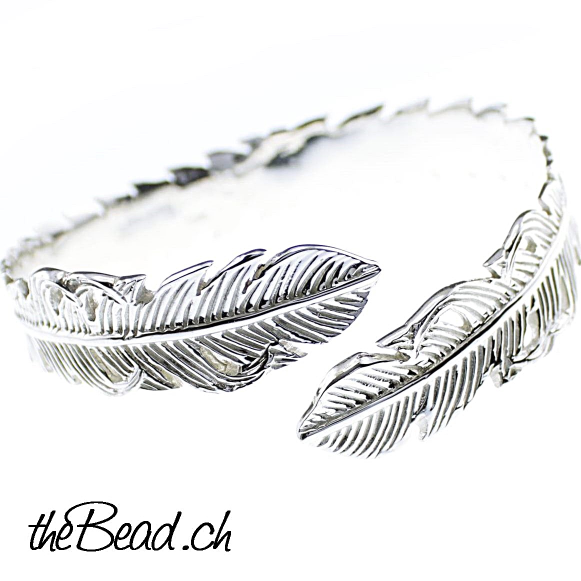 Der Armreif (die Feder) ist ca. 9.5 mm breit, der Innendurchmesser ca. 6 cm