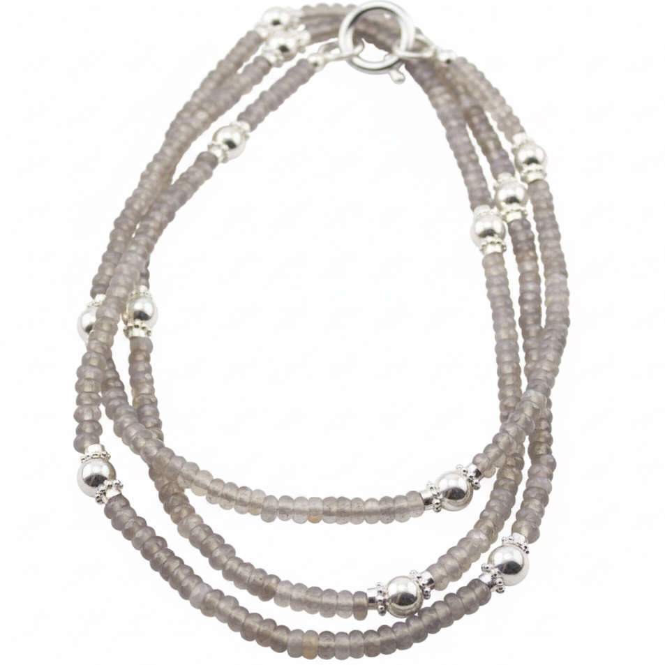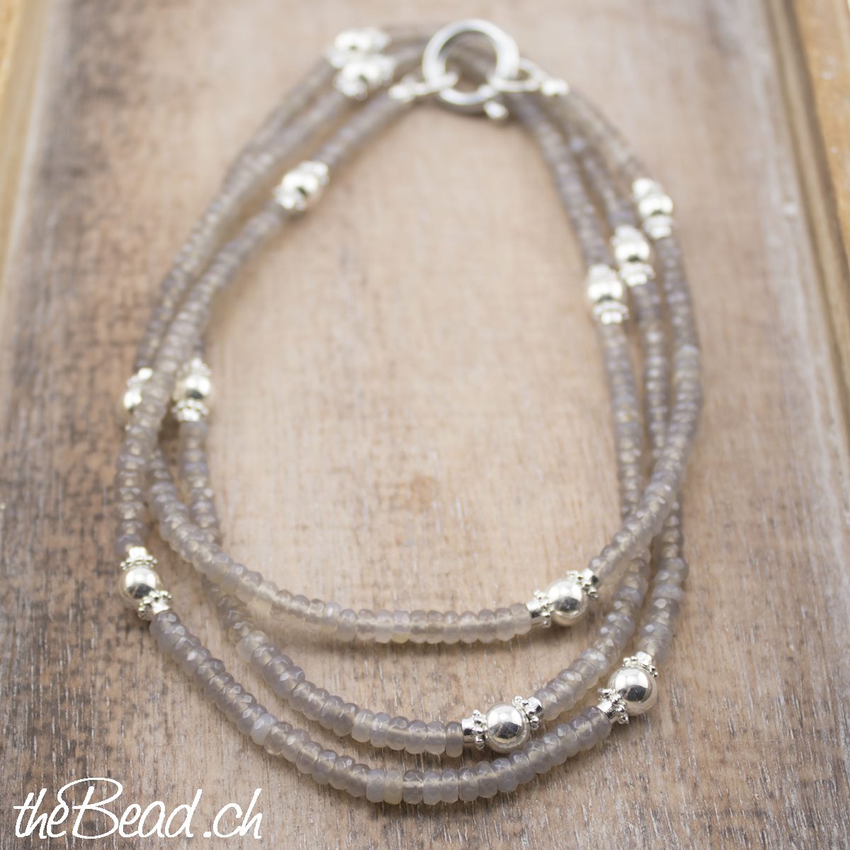 Sehr schöne Perlenkette aus facettierten Achat Perlen 4.5 mm, verziert mit vielen Silberperlen.