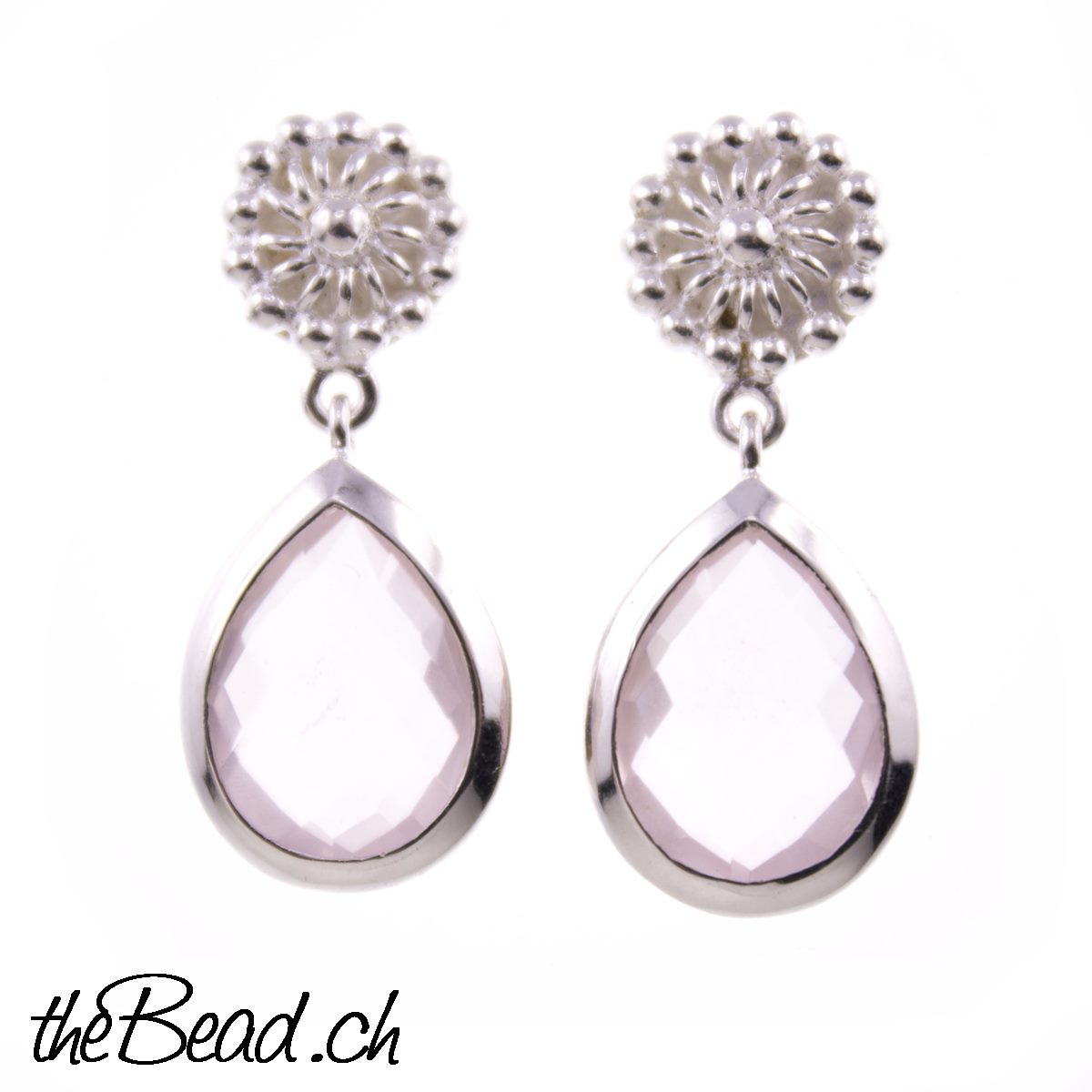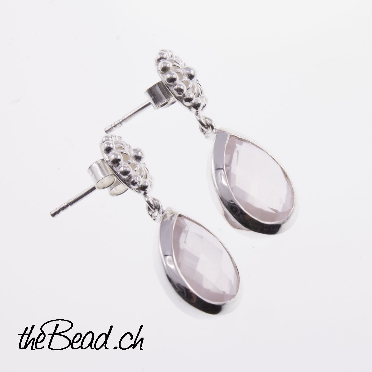 Rosenquarz Silber Ohrringe