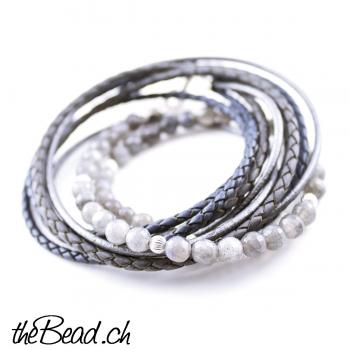 LABRADORIT Perlen & Lederarmband