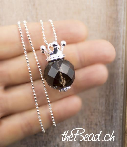 Rauchquarz Kugel mit Silber - Krönchen & Halskette