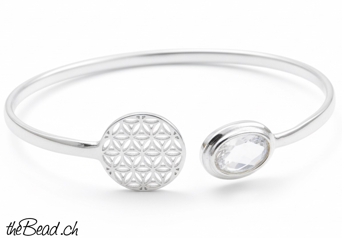Dieser Silberschmuck Armreif ist wunderbar luftig leicht zu tragen und besteht aus Echtsilber sowie einem ovalen, facettierten Bergkristall