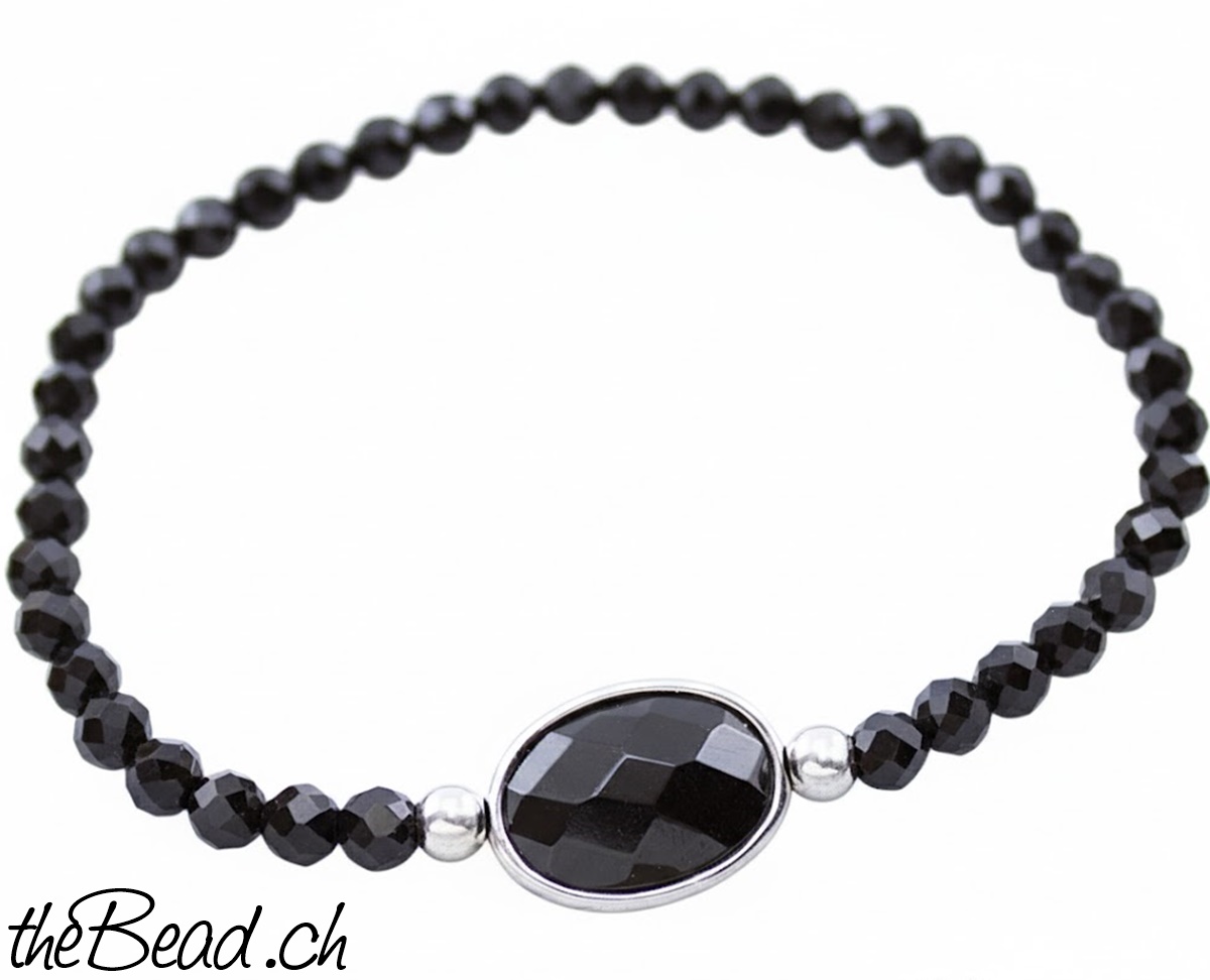 ONYX Armband mit auffälligem grossen, in Silber eingefassten ONYX in der Mitte.