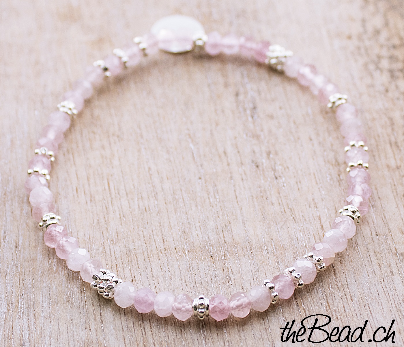 Armband mit facettierten Rosenquarzen und verschiedenen Silberperlen