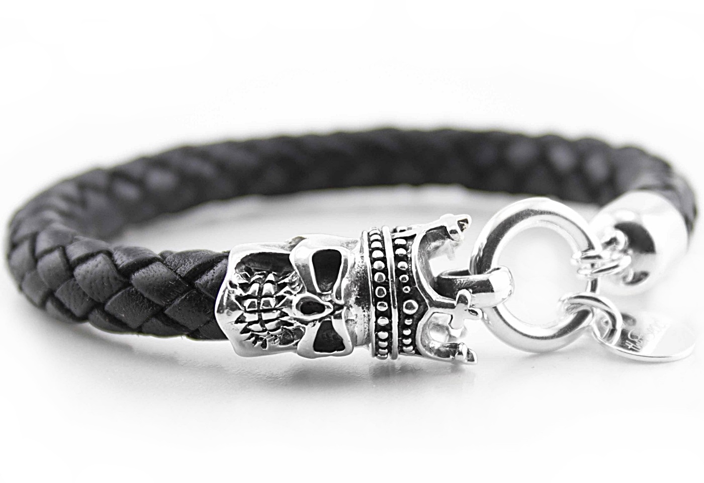 Das Herren Lederarmband besteht aus Leder sowie einem Silberverschluss in Form eines Totenkopf - das Armband wird mit dem grossen Verschlussring geöffnet & gesschlossen. Einen Teil des Verschlusses gravieren wir auf Wunsch ( und gg. Aufpreis ) mit Ihrem Wunschtext.
