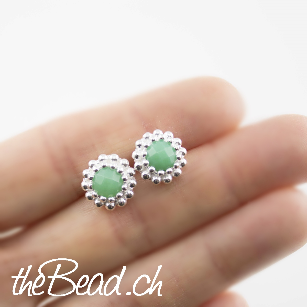 Ohrstecker aus Silber und tollem Chrysopras, in Silber Pünktchen-Muster eingefasst