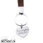 Der Schlüsselanhänger besteht aus einem Lederband ( 10 mm Breit ), welches wir mit Ihrem Wunschtext gravieren