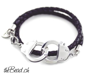 geflochtenes Lederarmband HANDSCHELLEN mit Wunschtext graviert