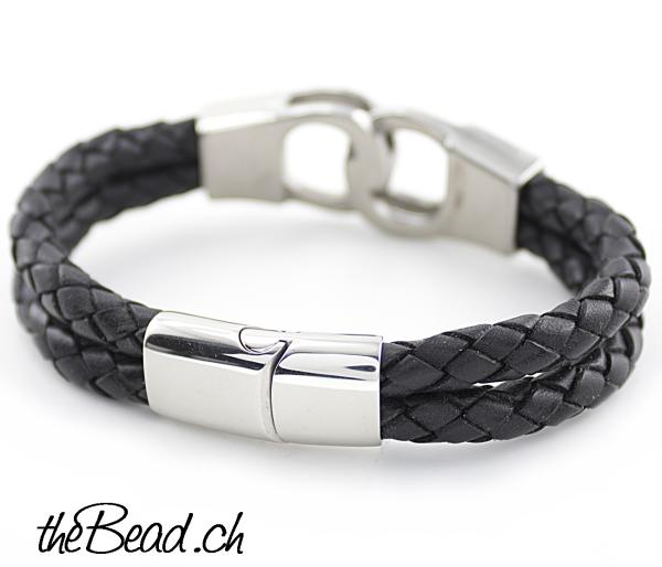 Massives, schwarzes Lederarmband mit praktischem Magnetverschluss