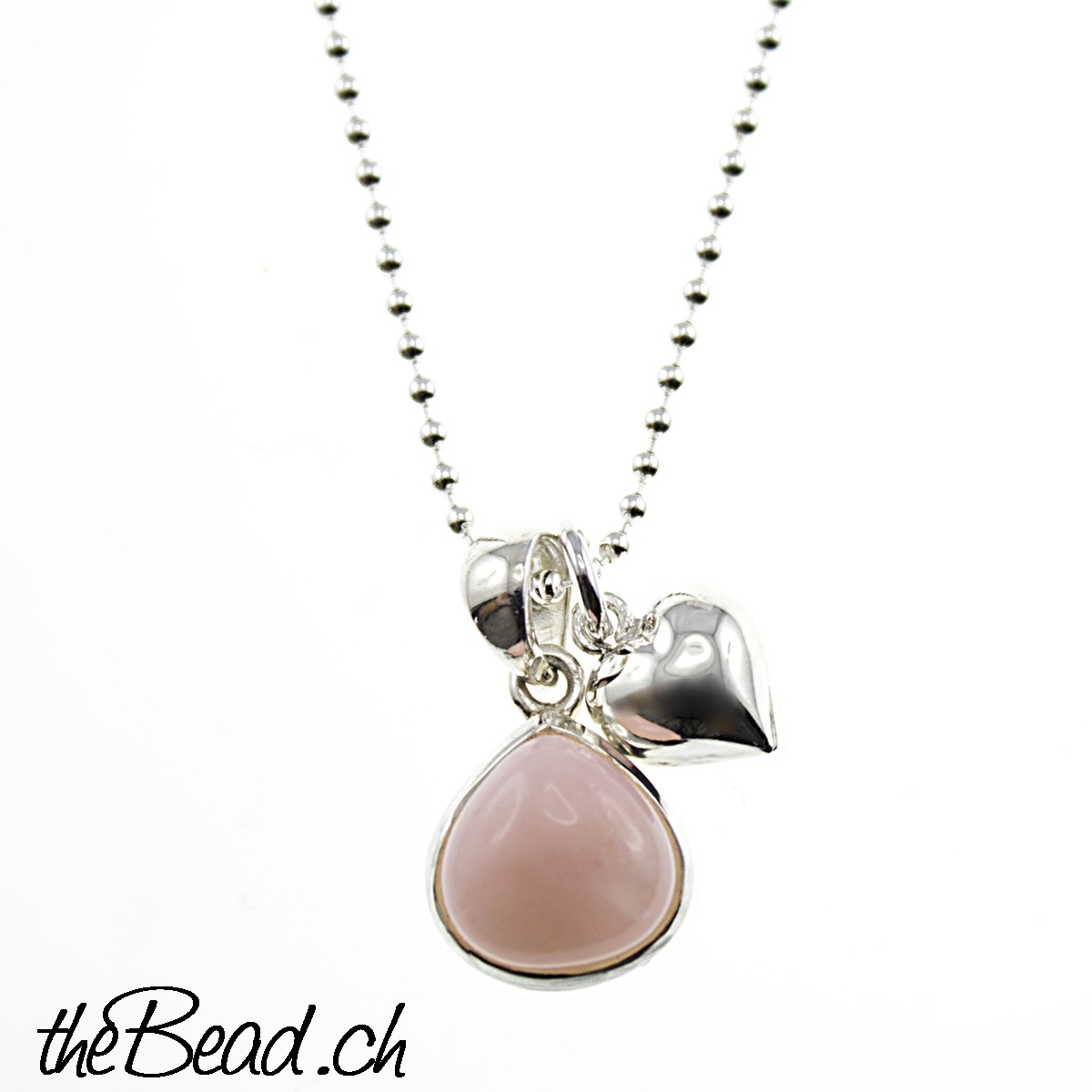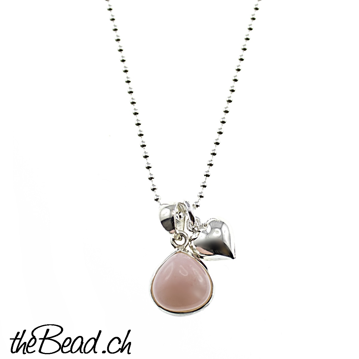 Silberkette AVA mit rosa Andenopal & Herz Anhänger