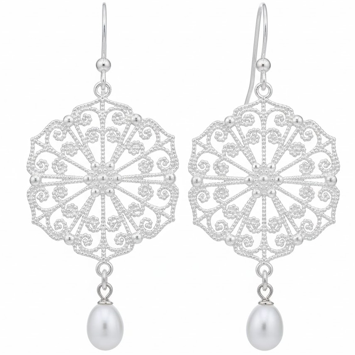 Luftig leichte Ohrhänger mit Perlenanhängern, wunderbar aus Silber gearbeitet. Material: Silber 925 Sterling, Perlen Grösse: die Ohrhänger sind 5 cm lang