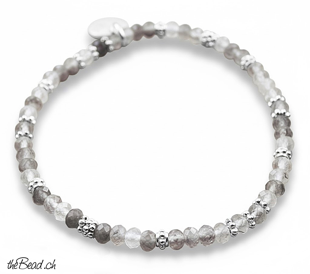 Armband mit facettierten Silberquarzen und verschiedenen Silberperlen