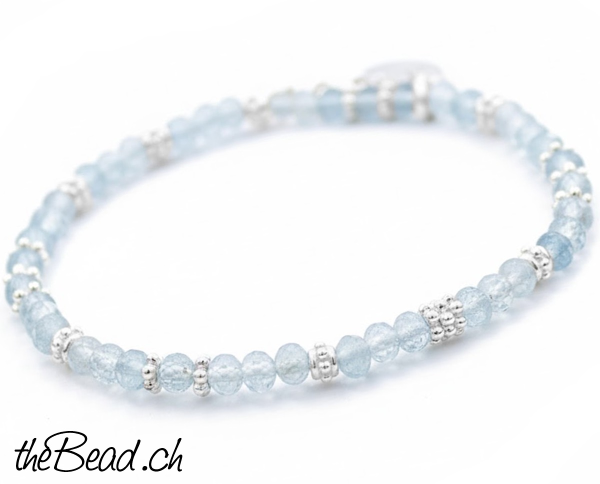 Grösse: Armbandlänge 18 cm, Aqumarin 4 mm im Durchmesser