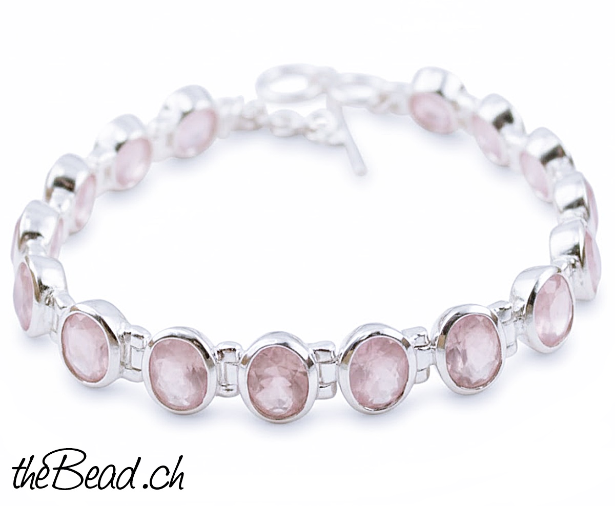 Silberarmband mit ovalen Rosenquarz Steinen